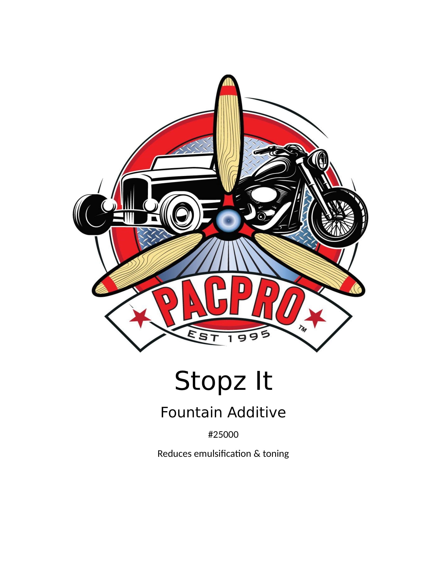Stopz It acts as a wetting agent for fountain solutions. It makes water wetter allowing the water to be run at minimum settings which reduces emulsification and toning