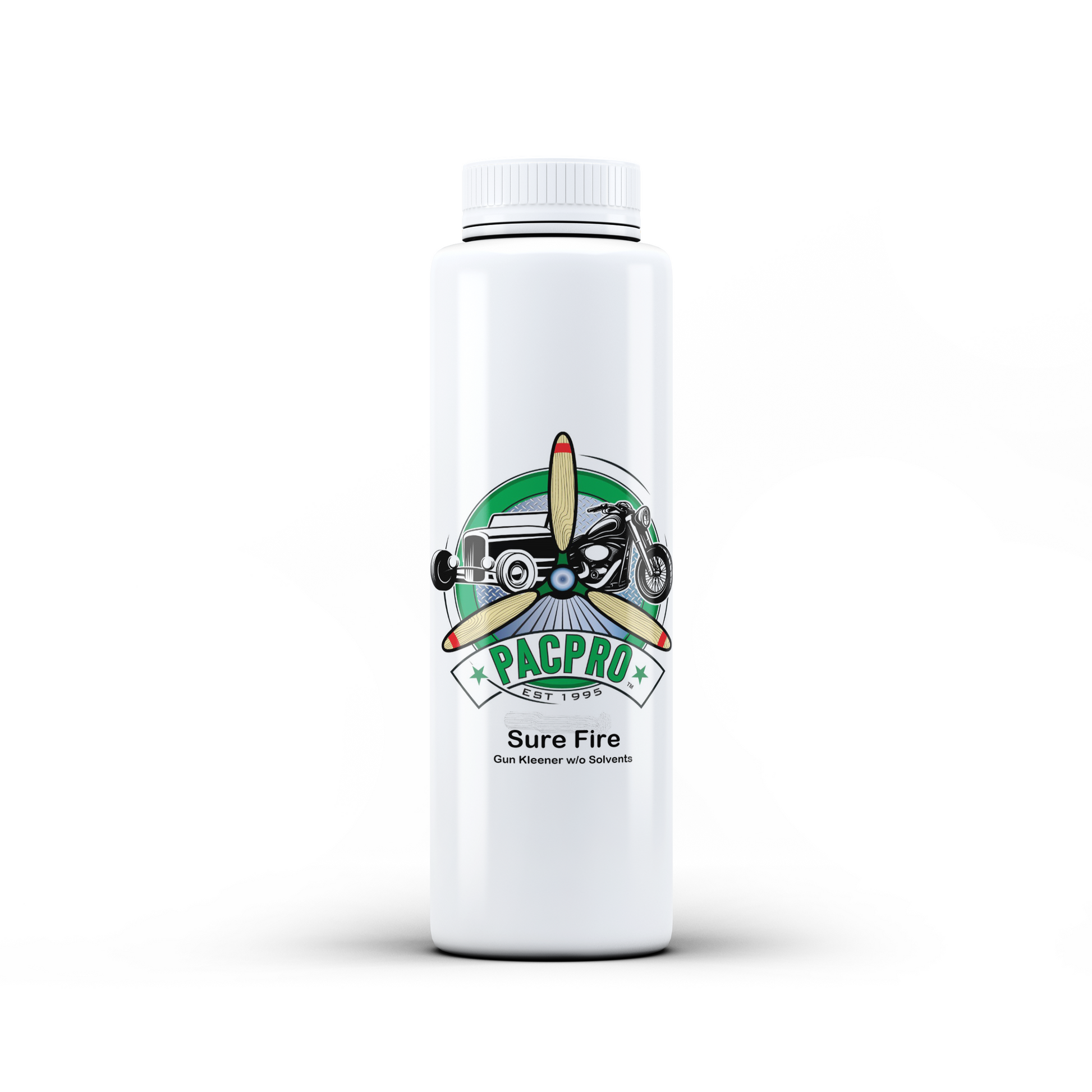 Our non-solvent gun kleener makes a difficult job a breeze. Simply spray Sure Fire into the barrel and chambers and use compressed air to blow the residue out.